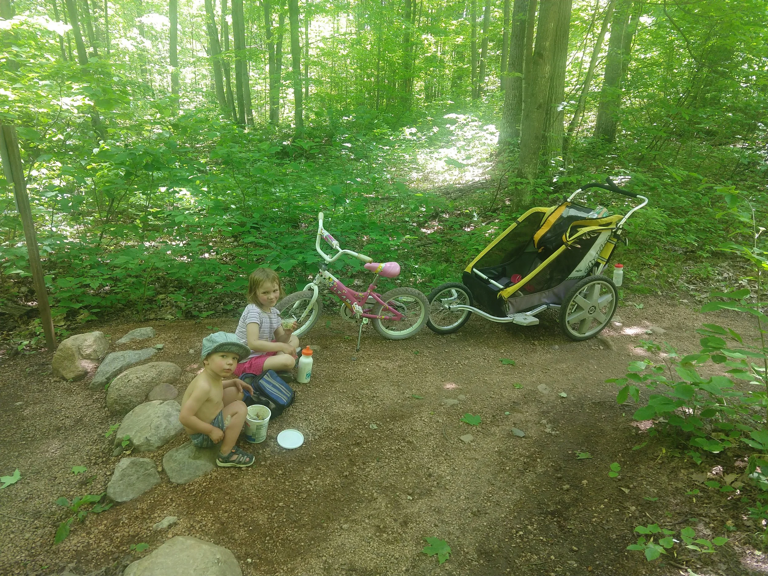 We worked up on the duration and mileage based on the child. We empowered each child, allowing them to determine the rock or log for a snack break location or to choose the route. This worked particularly well on trails or road rides, deviating us from our standard route where we discovered new flower gardens, berry patches, barn quilts, and unique trees. Before reaching the point-of-no return, we’d check with each child before making the commitment, to ensure a pleasant experience for all. We sometimes got a bit turned around, or needed extra breaks, but time constraints were typically not an issue. Nonetheless, we had ample character building opportunities and often I marveled at how the children rallied to bolster each other.