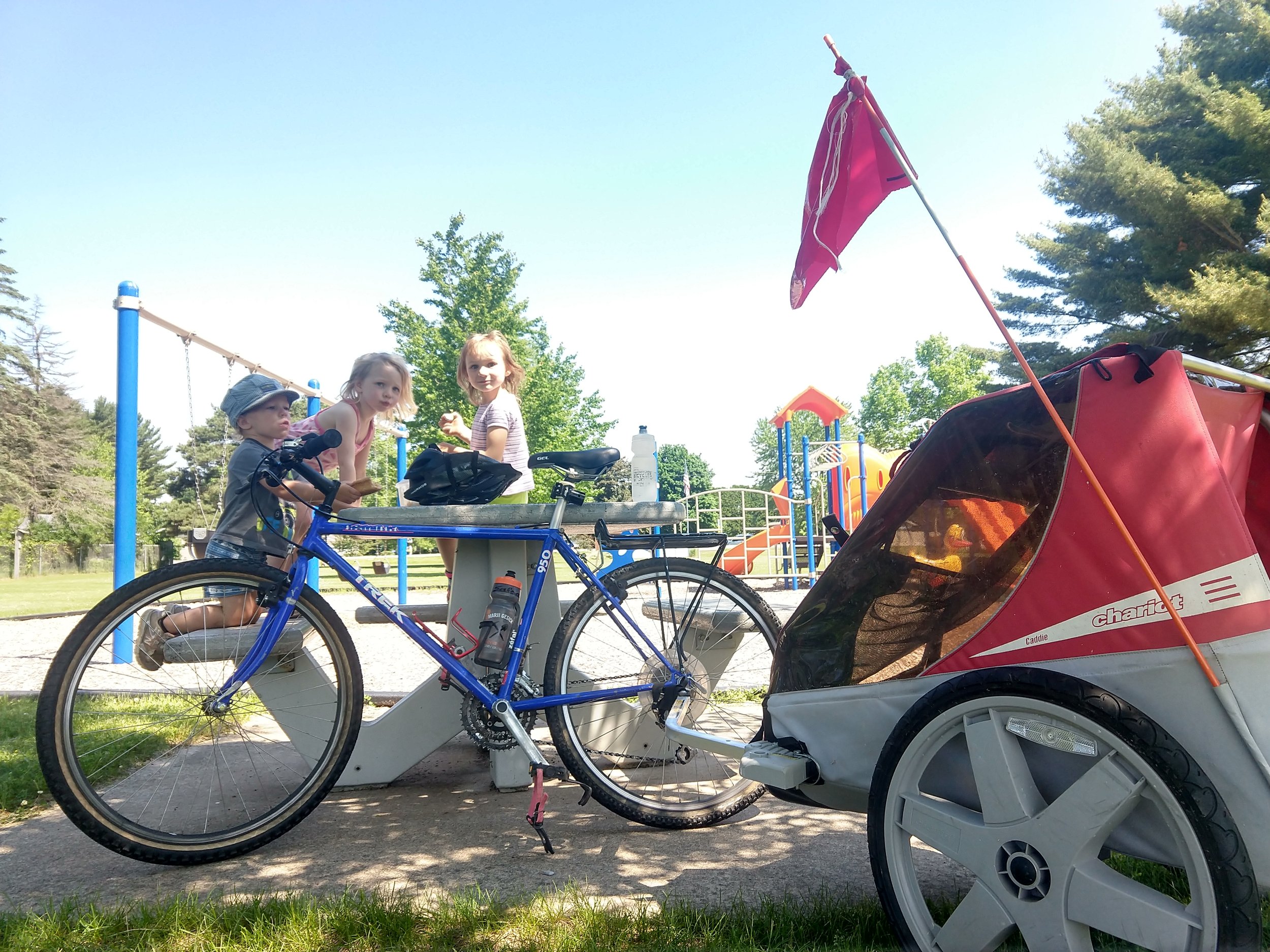 Outings to the park often included a bike ride with picnics, where the bike trailer provided an extra workout.