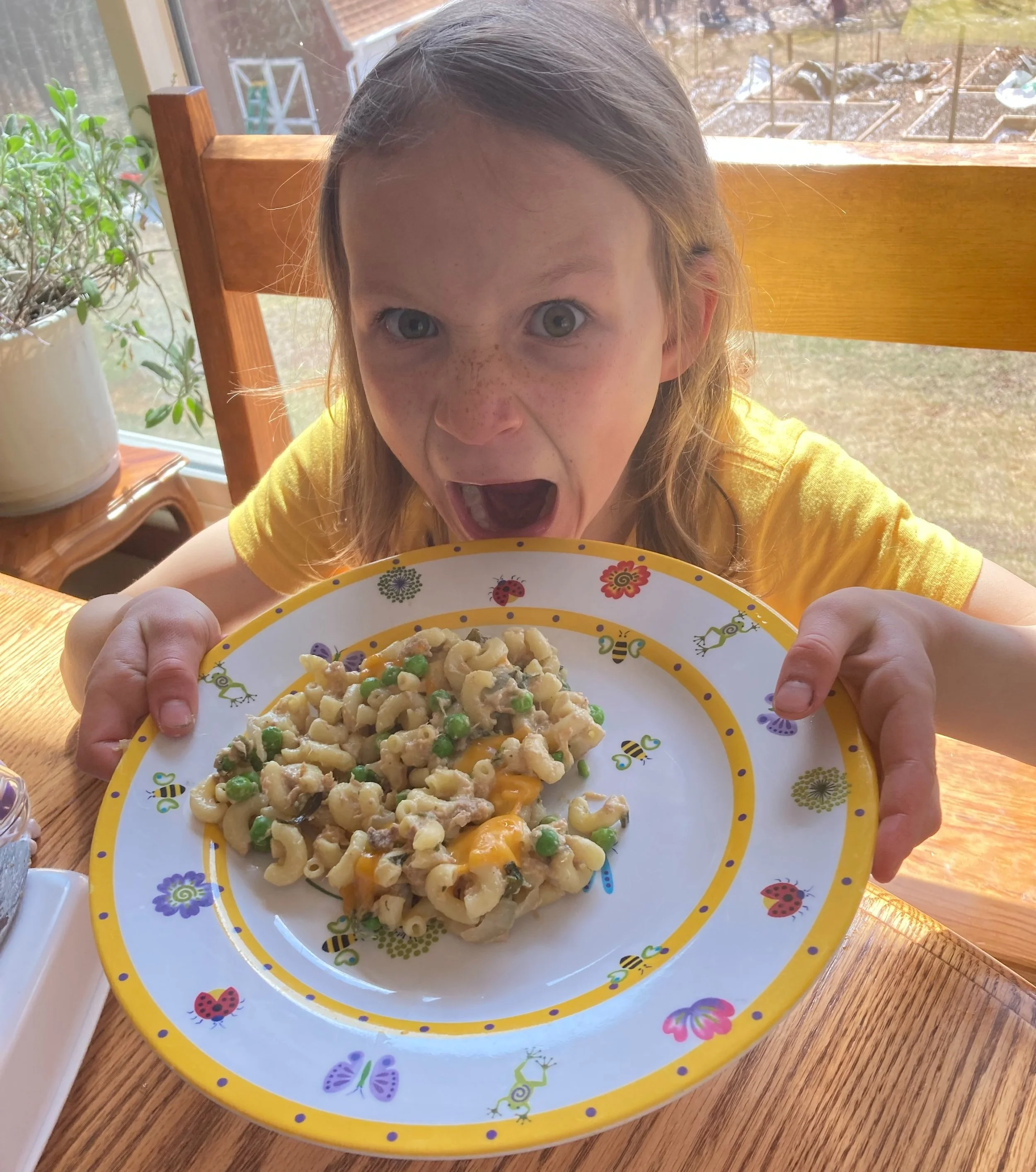 My oldest announced after arriving at the dinner table, “EVERYONE in our family loves tuna noodle casserole.” Then she was asking for seconds about two bites in.