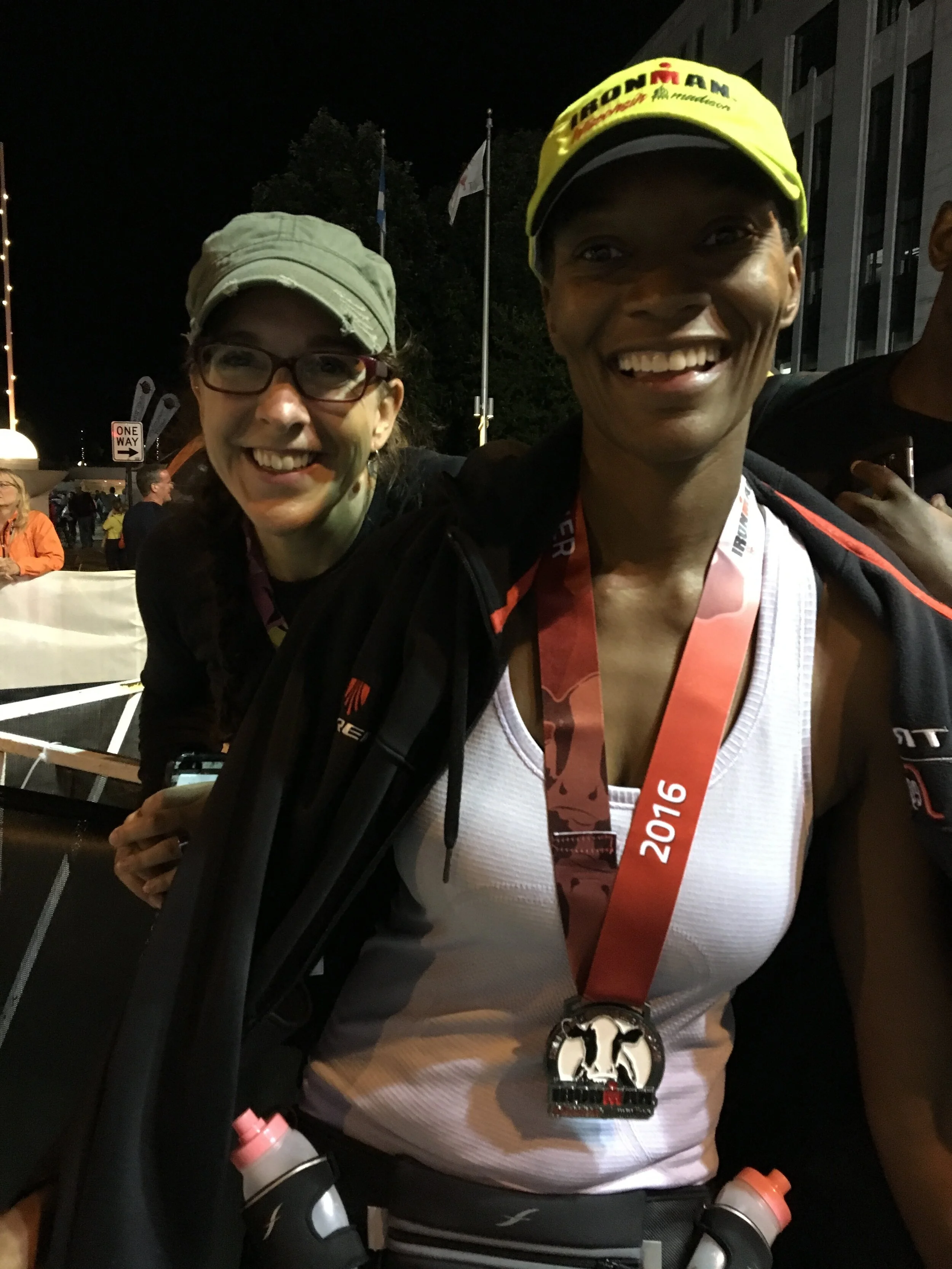 LaToscia and her IRONMAN “Sherpa”, Ann Marie. Ann Marie was LaToscia’s manager at the time and supported LaToscia throughout the entire race, even carrying her bags to the start and running with LaToscia at the end of the race.